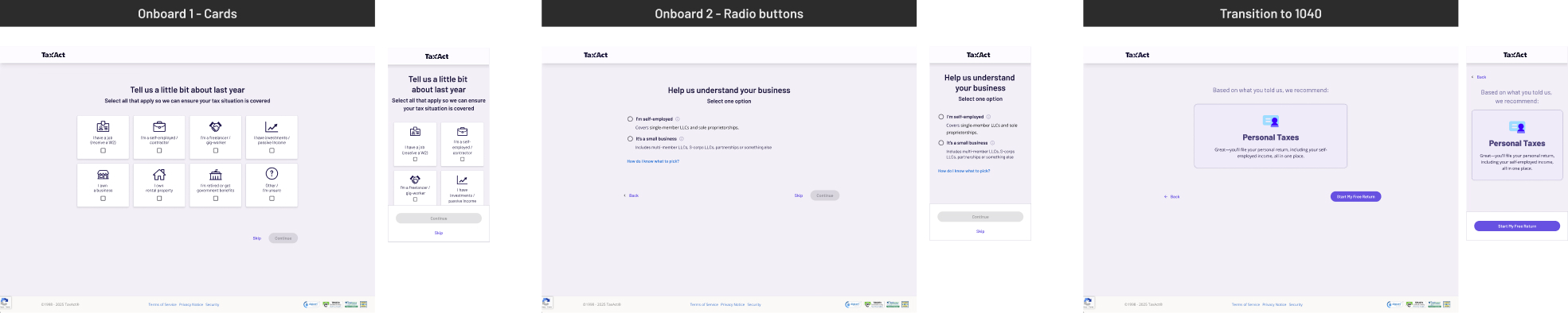 This design is now live, and all new TaxAct users experience it during account creation, helping guide them to the correct form.